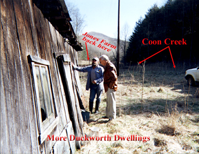 Nothing but a cellar and part of a hearth left at the bottom of the mountain. Halfway to the top of the mountain (coon knob) is the graveyard. I don't think its a recognized graveyard. At the very top of Coon Knob was an original homestead - I didn't venture up - too steep. That house burned down and the replacement was built in at the bottom. |